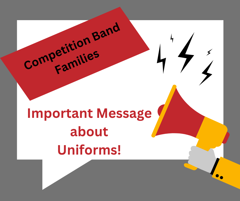 Students will be bringing home their competition uniforms on Saturday, after the MSBA competition. Very IMPORTANT.. Please make sure they pack their uniform in their red bag for the trip to Orlando. If they forget, they won’t have a uniform to march in.