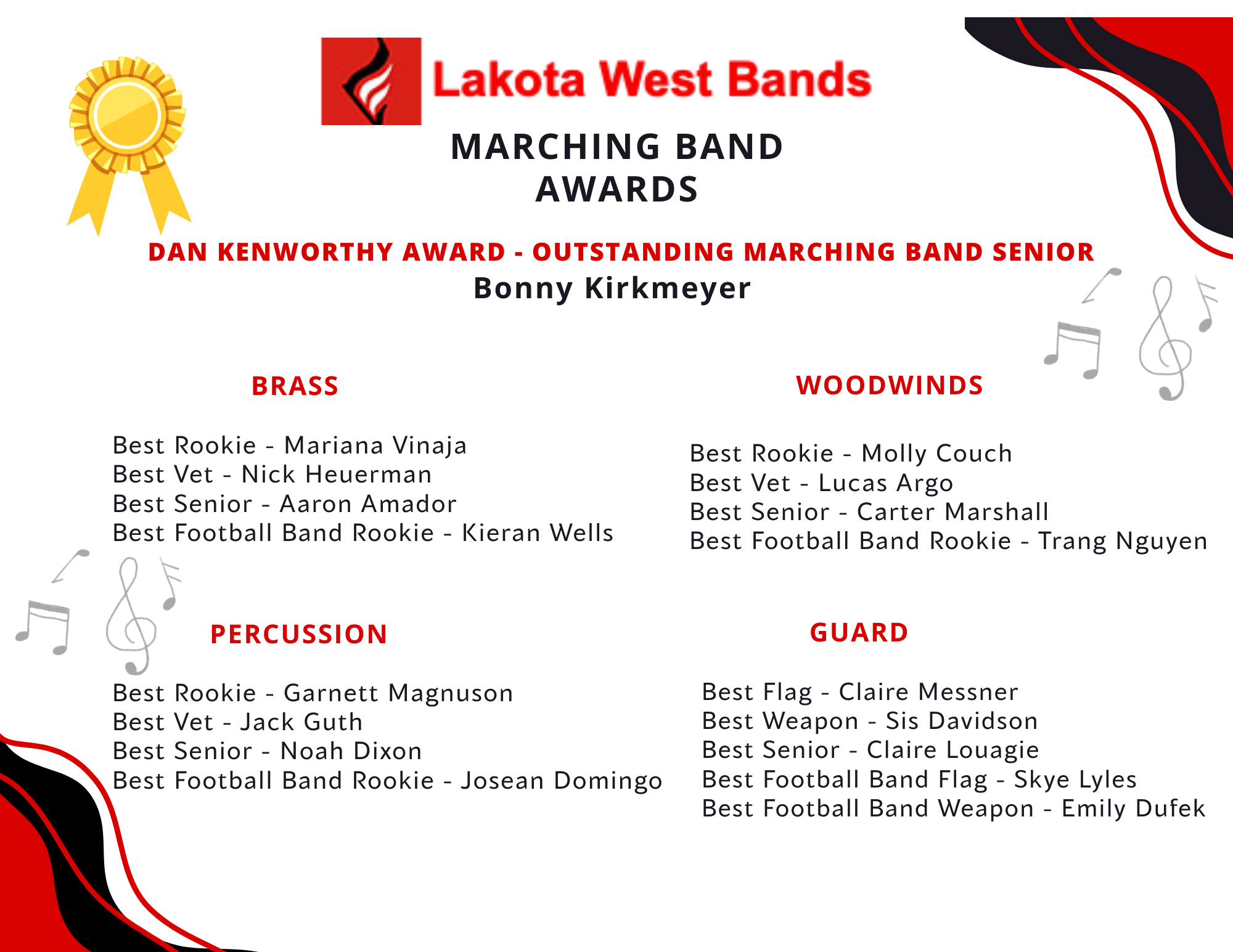 You can always find information on our website, our calendar, and on our social media pages (@lakotawestbands).If you have any questions, don’t hesitate to reach out to us at LWUpbeat@gmail.com