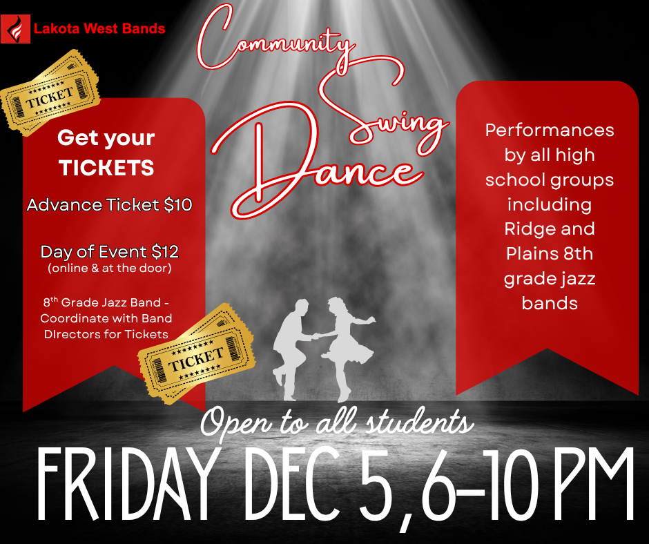 Buy your Tickets today: https://lakotawestbands.org/swingdance/