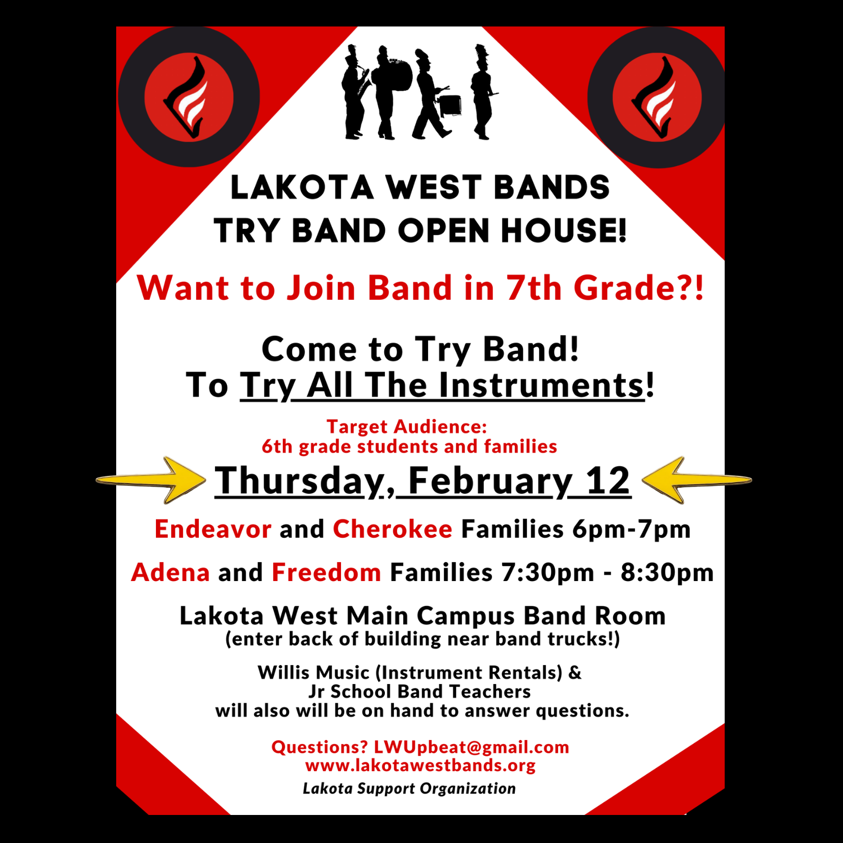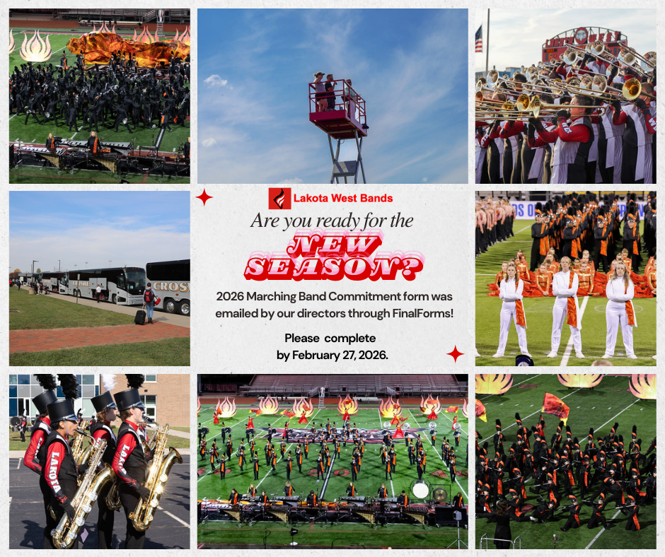 You can always find information on our website, our calendar, and on our social media pages (@lakotawestbands).If you have any questions, don’t hesitate to reach out to us at LWUpbeat@gmail.com