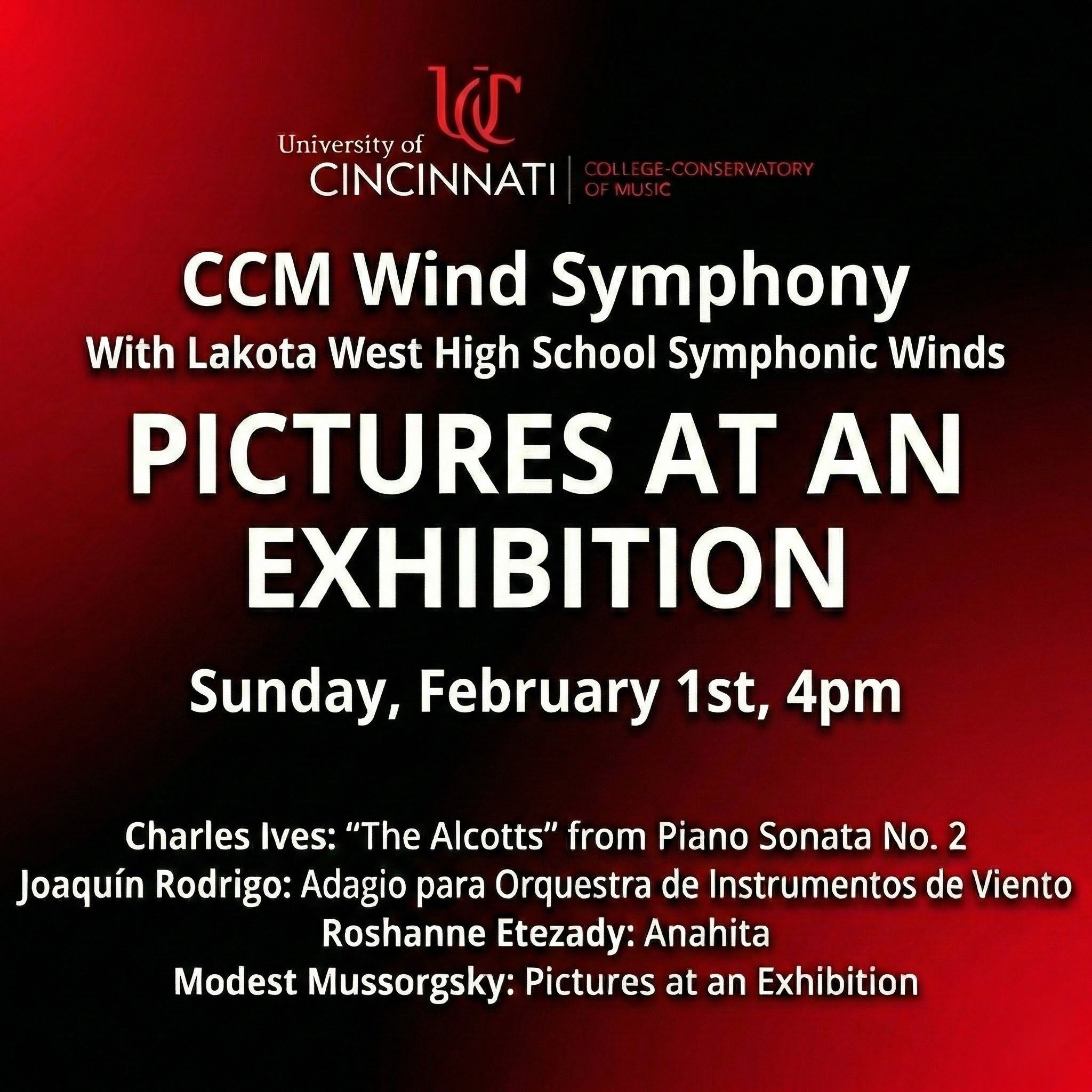 Our Symphonic Winds and the UC College Conservatory of Music Wind Symphony will be performing this Sunday 2/1/26 at 4pm at CCM Corbett Auditorium. This is a ticketed event, tickets available at this link