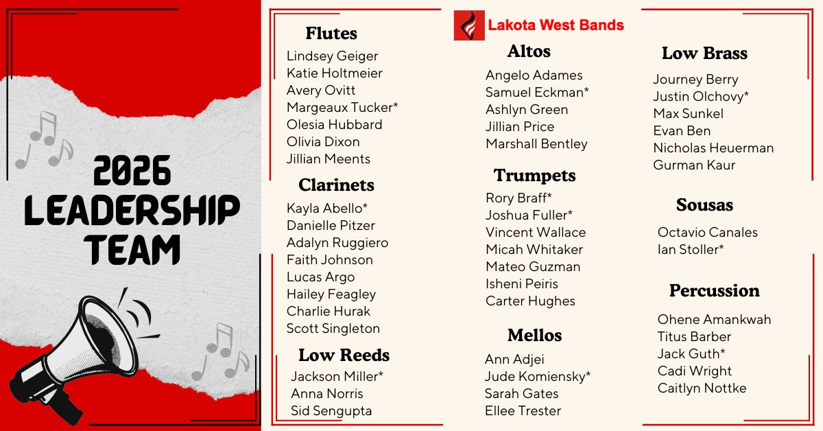 Congratulations to our 2026 Lakota West Marching Band Leadership Team!