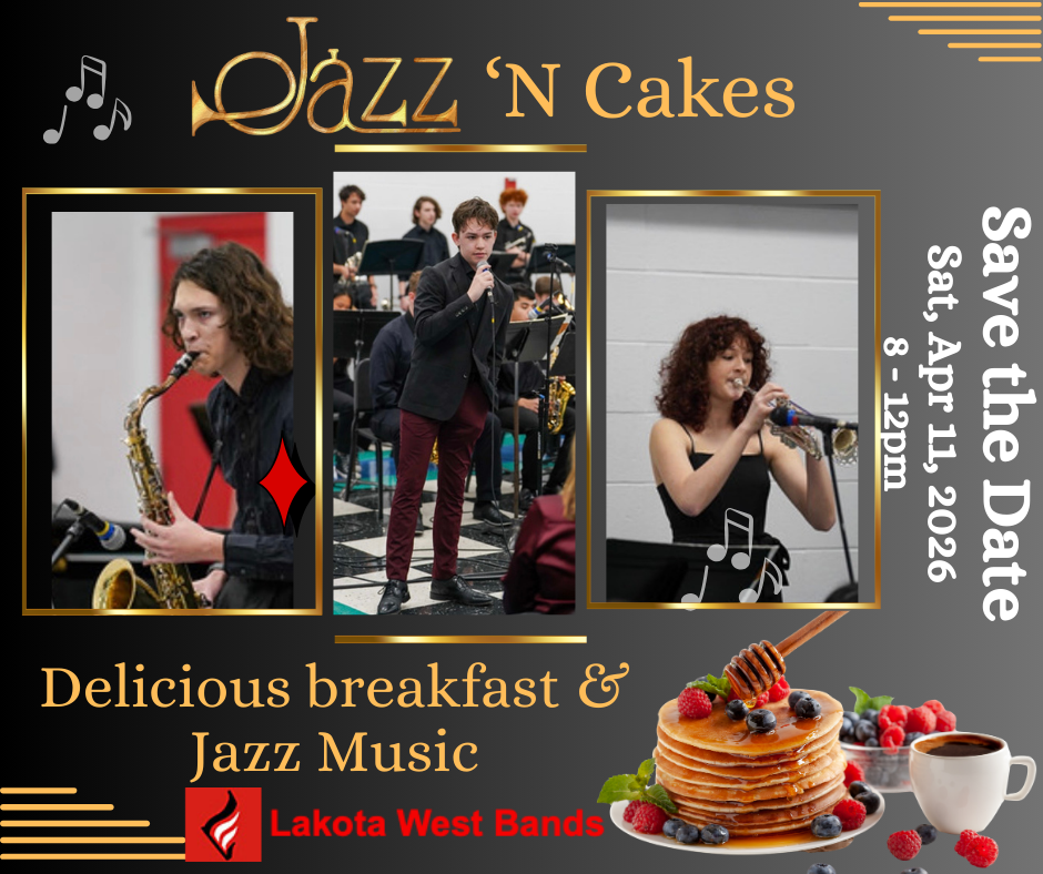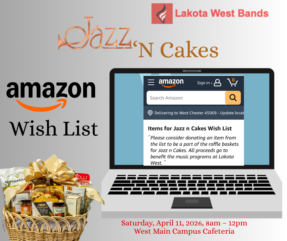 Please join us for the Lakota West Bands’ annual Jazz ’n Cakes Fundraiser—a morning filled with great music, a delicious breakfast, local vendors, and opportunities to win exciting raffle prizes. We’ll share more details about the event and how you can help make it a success soon. We look forward to welcoming you and sharing a wonderful event together.