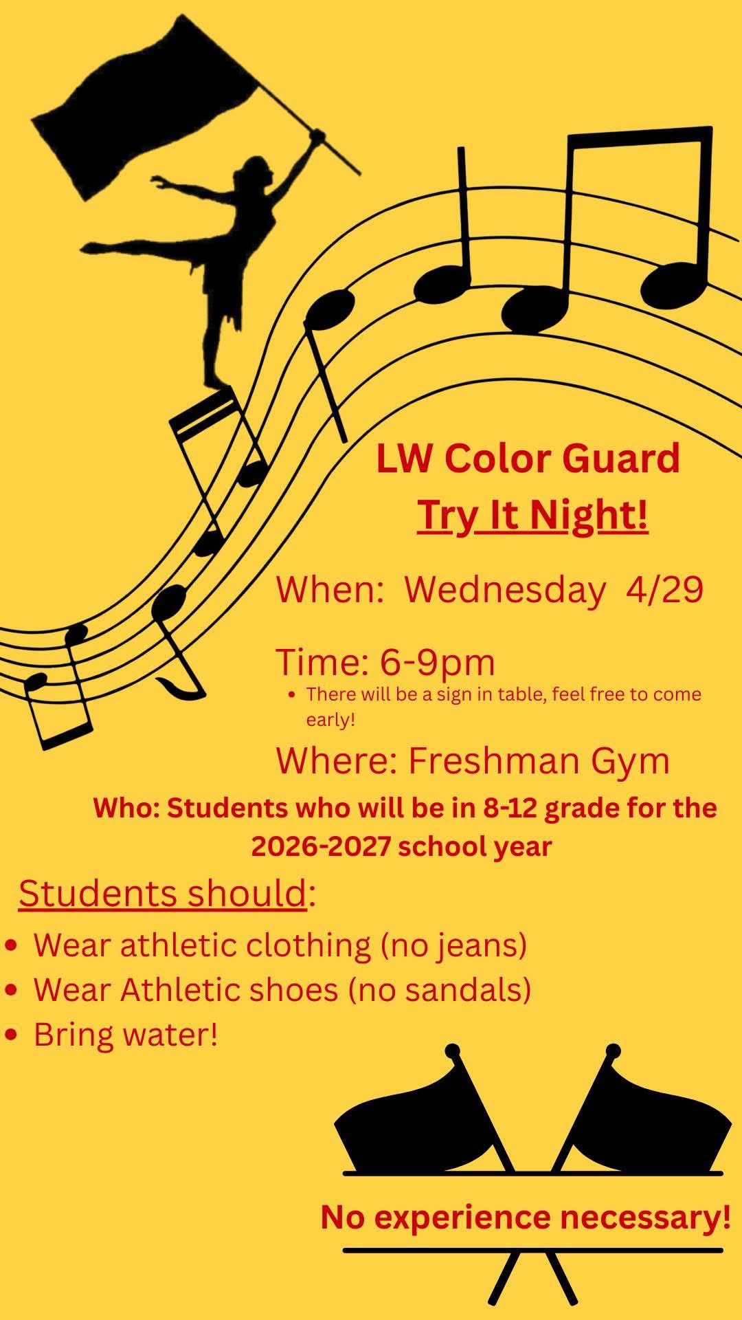Color Guard – Try it Out Night – Fall Football and Competitive Bands